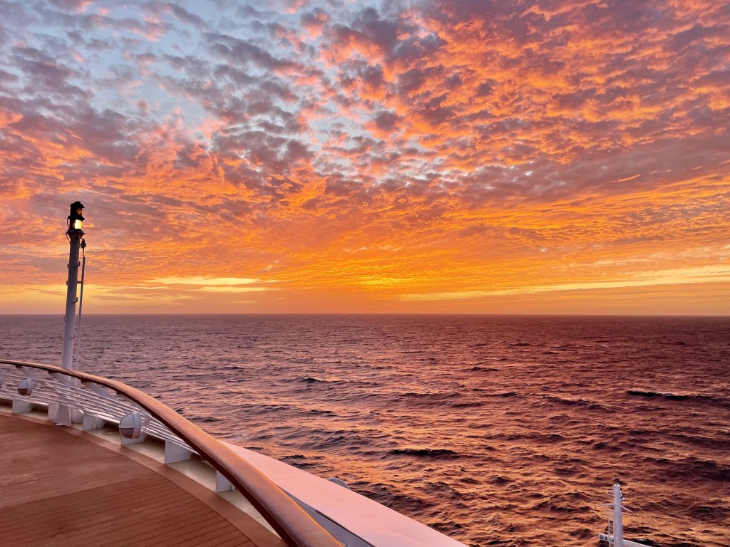 I w ten sposób kończy się kolejny dzień na pokładzie. Śniadanie, zwiedzanie, kolacja, zabawa. Brzmi monotonnie? Możliwe. Dla tego jestem przekonany, że nie jest to sposób spędzania czasu i wakacji który odpowiadać będzie każdemu. My osobiście uwielbiamy usiąść w barze położonym na najwyższym poziomie statku i popijając drinka patrzeć, jak ląd oddala się i znika z oczu w ostatnich promieniach zachodzącego słońca. Po aktywnym i napiętym dniu na lądzie, gdzie zawsze staramy się wykorzystać do cna dany nam czas, lubię, kiedy wiem, że jedyne, za co jestem teraz odpowiedzialny, to dobrze się wyspać przed kolejnym dniem pełnym przygód. Rozrywka, bogata oferta kulinarna oraz wszelkie atrakcje jakie oferuje nam statek wycieczkowy nigdy nie sprawiły, żebym odczul niechęć do tego typu podróżowania. A kiedy jemy kolację, pijemy drinka a później układamy się spać… to statek płynie dalej… Dobranoc!