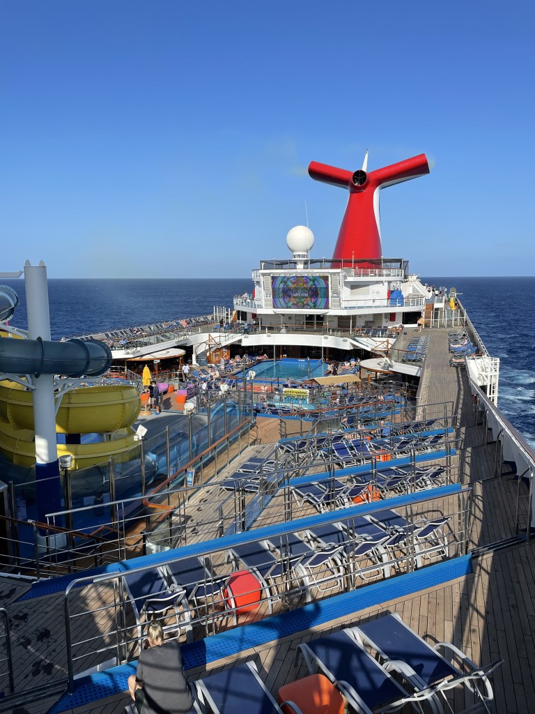 Kolejny minus, o którym warto wspomnieć, który zapewne dla części pasażerów nie jest niczym istotnym to swoista klaustrofobia przez przestrzeń. Wiem, brzmi to nielogicznie, ale wyobraźmy sobie ten ogromny statek, na którym jesteśmy. Jest noc. Nad nami jedynie miliony migoczących gwiazd. Dookoła ciemność a my jesteśmy na statku. Nie ma w tym momencie ucieczki. Statek nie zatrzyma się i nie zejdziemy z niego, bo nie ma gdzie. Jesteśmy pośrodku bezkresnego oceanu i jesteśmy zdani na łaskę kapitana oraz pogody. Dziwne uczucie. Szybko mija jednak, bo za chwilę zaczyna się kolejny pokaz w teatrze a zaraz potem kolacja i dyskoteka na piątym poziome zaraz za naszym ulubionym barem, więc zbyt wiele czasu na analizę swojej sytuacji wobec natury nie ma.
