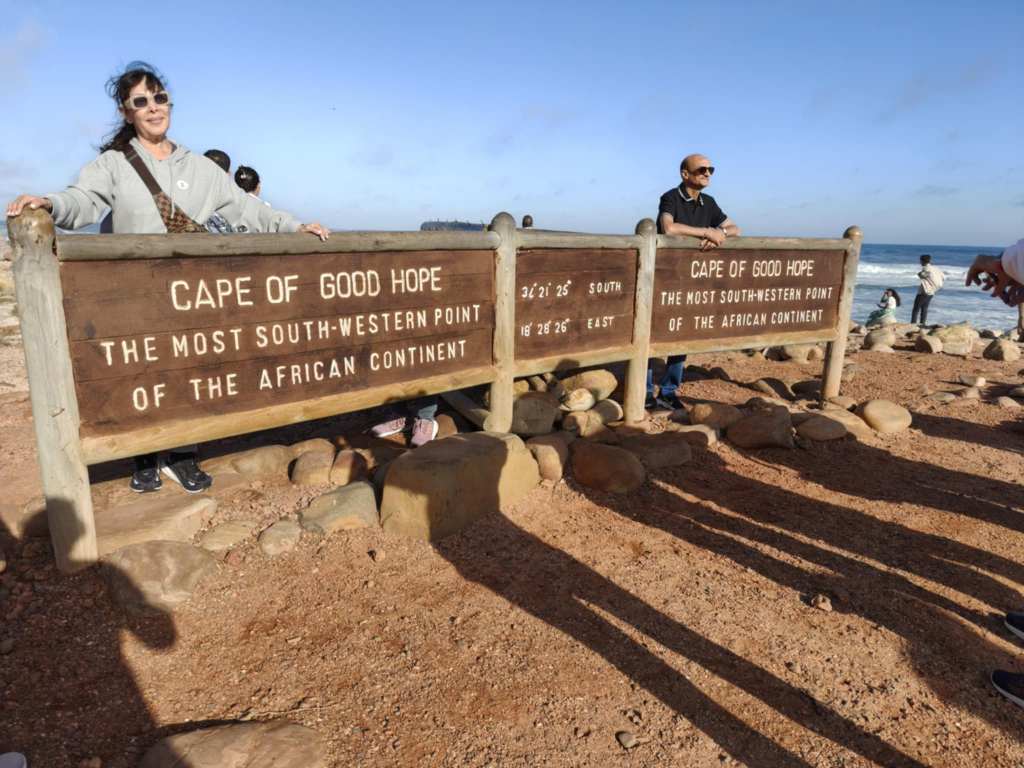 Lekko rozczarowani wróciliśmy do autokaru, aby następnie, przejechać pod tablicę informującą, że właśnie znajdujemy się na najbardziej na południe wysuniętym krańcu Afryki. Tam pogoda już dopisywała. Słońce świeciło a błękitny ocean odbijał jasne promienie dnia. Pamiątkowe zdjęcie i ruszamy dalej.