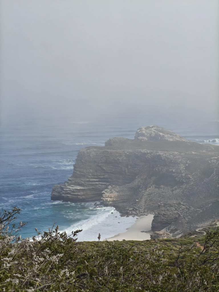Dojechaliśmy na miejsce. Na zewnątrz było dość chłodno. Przed nami jedna z atrakcji „Rezerwatu Przylądka Dobrej Nadziei”. Latarnia morska, która wiele lat wstecz wskazywała drogę statkom, ostrzegając marynarzy przed skalistym wybrzeżem i niechybną śmiercią, jaka czekać na nich mogła, kiedy ktoś popełniłby błąd w nawigacji okrętu. Niestety, szczyt góry, na której owa latarnia znajdowała się, spowijały gęste chmury. Dotarliśmy na szczyt kolejką linowo terenową i otuleni białą jak mleko mgłą nasłuchiwaliśmy szumu oceanu, którego fale, gdzieś tam hen pod nami rozbijały się o kamienisty brzeg południowej Afryki.